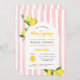 Feiern Sie die zukünftige Braut mit dieser frischen und unterhaltsamen Braudusche vom Hauptpresse! Dieses Design mit einem sommerlichen Zitronenmotiv und Aquarelllemonen, das einen stilvollen Gewölberahmen umgibt, wird durch moderne Typografie und einen rosa Cabana-Streifen-Hintergrund ergänzt. Ideal für eine fröhliche, von Zitrusfrüchten inspirierte Feier! Erhältlich als professionell bedruckte Karten oder als bequemer digitaler Download zum einfachen Drucken oder Teilen.