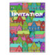 Grafik mit vielen bunten Häusern... mit dem Text "Einladung"