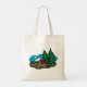 Ein kleines Holzhaus im Wald zwischen den Bäumen. Dieses Design sieht auf dieser Totbeutel wirklich effektiv aus