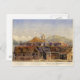 Aquarellmalerei mehrerer Häuser in Acapulco, Mexiko mit Bergen im Hintergrund.