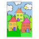 Ein niedliches Cartoonbild eines kleinen Dorfs.