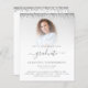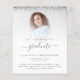 Eine günstige BUDGET-Alternative für eine kleinere Größe von 4,5 x 5,6 Zoll, die ein Gewicht von 110 lbs hat, die ähnlich dick ist wie eine Postkarte (sie ist jedoch nicht als Postkarte geeignet). BITTE BEACHTEN SIE, DASS ES EINE pro Blatt gibt. Budget 2022 Abschluss Foto Silver Glitzer Party Einladung. An beiden Seiten sind die Glitzer-Ränder von glänzenden silbernen Imitaten ganz oben. Der Absolvent ist in einem eleganten Skript mit Swashes. Personalisieren Sie den Text einfach auf Ihre eigenen Anforderungen, und ersetzen Sie das Beispielbild mit Ihrem eigenen. Um den minimalistischen zeitgenössischen Look dieses Designs behalten, wird ein Foto mit hellen Hintergrund gut funktionieren.