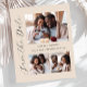 Diese schlichte, minimalistische Save the Date Karte verfügt über eine Collage aus Foto mit einem horizontalen Foto oben und zwei quadratischen Fotos unten. Die Wörter "Save the Date" laufen in elegantem schwarzen Schriftskript vertikal über den verlassen Rand. Die Namen des Ehepaares, das Hochzeitsdatum und die Stadt erscheinen zwischen den Fotos in schwarzen Sans Serif Schriftart auf beige Hintergrund. Fügen Sie eine detailliertere Nachricht mit zusätzlichen Informationen auf der Rückseite hinzu.