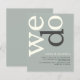 Eine günstige BUDGET-Alternative für eine kleinere Größe von 4,5 x 5,6 Zoll, die ein Gewicht von 110 lbs hat, die ähnlich dick ist wie eine Postkarte (sie ist jedoch nicht als Postkarte geeignet). BITTE BEACHTEN SIE, DASS ES EINE Einladung pro Blatt gibt. BUDGET Einfache Seite Elfenbeintext Hochzeit einladen. Ein modernes typografisches Design mit We Do in großer Typografie in Elfenbein mit ihnen"d" in grau, rotiert und auf der links Seite auf einem Hintergrund von hellweise grün. Hintergrund- und Textfarben können auf Wunsch über Weitere Anpassungen geändert werden.