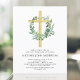 Der Eukalyptus und der Gold Cross Botanische Grüne Wasserfarbe Religiöse erste (1.) heilige Kommunion Einladungen.