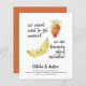 Diese lustige und niedliche Brautdusche lädt zu einer heißen Sommerveranstaltung mit niedlicher Karotte und Banane ein, und die Ausdrücke "wir können warten, um verheiratet zu sein", "wir sind Bananen über einander". Dies kann auch für eine Hochzeitsankündigung oder eine Einladung zu einer Verlobungsfeier verwendet werden. Entwurf von LeahG von budgetweddinginvites.com
