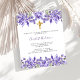 Weiß, mit Aquarelllavender-Blume und einem goldenen Kreuz dekoriert. Personalisieren und einen Namen und Details. Zurück: Lavendel, violetter Hintergrund.