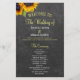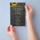 Elegantes Land rustikale Hochzeitszeremonie und preiswertes Party-Budget-Programm Vorlage mit zwei wunderschönen orangefarbenen Sonnenblumen und einem Imitat Gold und Weiß Chic Kalligraphie-Skript auf einem dunkelgrauen Chalkboard-Hintergrund.+++++++++++ Persönlich mit Ihren Details! ++++++++++ Geeignet für rustikale Hochzeiten im Garten im Sommer oder Herbst im Hinterhof. ++++++++++++++++++++++ BITTE LESEN SIE DIES VOR DEM KAUF! Dies ist ein preiswertes Hochzeitspapier, das auf einem FLYER gedruckt wird (Werbeschrift). ++++ Bitte beachten Sie, dass BUDGET PAPER DÜNN IST - Sie können diese Karte aktualisieren, um sie auf dem Cardstock gedruckt zu haben ++++ ENVELOPES NICHT INCLUTED. +++ Doppelter Karo alle Informationen und Rechtschreibfehler Ihres Textes, weil Sie genau erhalten, was Sie sehen - niemand sonst wird etwas Karo vor dem Drucken. ++++ Diese Karte ist für eine Größe von 5,5" x 8,5" konzipiert. Wenn Sie eine andere Größe der Karte wählen und Text außerhalb der Seite geht, muss alles repariert werden, bevor das Produkt zum Warenkorb hinzugefügt wird.