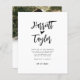 Diese bezaubernde Hochzeitseinladung verkörpert durch ihr elegantes Design das Wesen der Romantik. Die Einladung steht im Mittelpunkt eines schlichten, aber fesselnden Herzmotivs, das die reine und unzerbrechliche Bindung zwischen dem Paar symbolisiert. Um dieses Emblem der Liebe herum sind die Namen der Ehepaare, die in einem Schriftart, der Märchen und immerwährende Liebe flüstert, anmutig geschrieben sind. Das gesamte Design ist sorgfältig auf einem hochwertigen Papier platziert, das ein taktiles Gefühl von Luxus und Vorfreude verleiht. Diese Einladung ist nicht nur ein Aufruf, eine Gewerkschaft zu feiern, sondern auch ein Sake, der die Liebe, Eleganz und Einfachheit der gemeinsamen Reise verkörpert und somit ein perfekter Vorbote für die kommenden Neugeborenen ist.