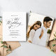 Die Einladung zur Hochzeit ist elegant und minimalistisch, mit klassischen schwarzen Kalligraphie- und Serif-Schriftart auf weißem Hintergrund.
