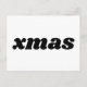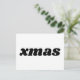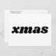 Budget Urlaub. Einfache schwarz-weiße Karte sagt XMAS auf der generischen Front und hat Ihren Namen und Ihre Adresse auf der Rückseite sowie eine knusprige und klare Frohe Weihnachten.