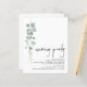 Eine günstige BUDGET-Alternative für eine kleinere Größe von 4,5 x 5,6 Zoll, die ein Gewicht von 110 lbs hat, die ähnlich dick ist wie eine Postkarte (sie ist jedoch nicht als Postkarte geeignet). BITTE BEACHTEN SIE, DASS ES EINE Einladung pro Blatt gibt. Budget Einfache Eukalyptus Skript Hochzeit Abend Party Einladung. Minimalistischer botanischer Stil, um Ihren Abend Hochzeitsgäste einladen. Ein modernes Set-Skript für Abend Party und die Erholung des Textes können Sie leicht personalisieren. Ein eleganter Zweig von Aquarelleukalyptus-Blätter verläuft auf der links Seite entlang.