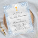 Imitate silber metallisch aussehende Hintergrund mit blauen Imitaten Glitzer Staub eine goldene Kalice und einen Wirt. Personalisieren und fügen Sie einen Namen und Empfang Details hinzu. Schwarze Buchstaben.