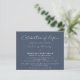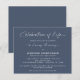 Eine günstige BUDGET-Alternative für eine kleinere Größe von 4,5 x 5,6 Zoll, die ein Gewicht von 110 lbs hat, die ähnlich dick ist wie eine Postkarte (sie ist jedoch nicht als Postkarte geeignet). BITTE BEACHTEN SIE, DASS ES EINE Einladung pro Blatt gibt. Budget Feier des Lebens Marine Blue Mittagessen Einladung. Ein stilvolles Set-Kalligraphie-Skript für Feiern von Leben und in Liebe Erinnerung und die Erholung des Textes können Sie leicht personalisieren, auf einem Hintergrund von staubigen marineblau.