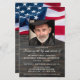 USA American Flag Memorial Beerdigung Feier des Lebens Einladung. Diese patriotische Feier der Lebenseinladung besticht durch eine USA-Fahne auf dunklem Holzboden. Personalisieren Sie diese amerikanische Fahne Feier des Lebens Einladung mit Ihren Lieben Foto, Name / Rang & Daten, Veranstaltungsort, und alle zusätzlichen Informationen auf der Rückseite. Diese Beerdigung durch das amerikanische Foto Flag wird ein wertvoller Sake sein. Ideal für eine militärische Beerdigung, für einen Veteranen-Gedenkgottesdienst oder eine militärische Feier des Lebens. In Love Memory Military Memorial American Flag. COPYRIGHT © 2020 Judy Burrows, Black Dog Art - Alle Rechte vorbehalten. Haushaltsfeier für das Militärische Veteran