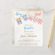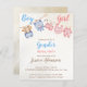 Das Budget Geschlecht offenbart Party Junge oder Mädchen Einladung mit rustikalen Vintagen Babykleidung auf der Linie.