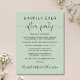 Haushaltsfreundliche Einführung oder kleinere Hochzeit Salbei Grün oder kleinere Hochzeitsankündigung und Party Einladung nach der Hochzeit oder Feier. Die Vorderseite zeigt "Happily Ever After Party" in einer Mischung aus einfacher Typografie und einem eleganten Drehbuch mit Swashes, und Sie können Ihre Nachricht und Einladung detaillierter und Ihre Namen in einem signaturähnlichen Skript personalisieren. Auf der Rückseite finden Sie Ihre Vornamen und das Hochzeitstermin.