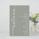 BUDGET Elegante Kalligraphie Sage Green Wedding Programm. Ein preiswertes 5,5" x 8,5", Ein modernes typografisches Design mit Welcome in einem Set Drehbuch und rotiert.