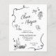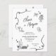 Diese Einladung zur Hochzeit bietet ein skurriles und spielerisches Doodle-Design, das es zu einer lustigen und einzigartigen Einladung macht. Die Vorderseite zeigt die Namen des Ehepaares in einem modernen Drehbuch-Schriftart, begleitet von handgezeichnet Doodles mit feierlichen Dingen wie Weingläsern, Ringen und Kuchen. Auf der Rückseite gibt es einen QR Code, der wichtige Details zur Hochzeit liefert. Die Einladung kann noch lebendiger gemacht werden, indem die Farbe der Doodle-Embleme und des Textes verändert wird, was diesem charmanten Design eine personalisierte Touch verleiht. Sie können es bearbeiten, indem Sie auf die Schaltfläche "Bearbeiten mit dem Entwurfswerkzeug" klicken.