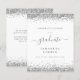 Haushaltsplan 2024 Abschluss Silver Glitzer Ankündigung. Ein Preis SMALLER 4,5" x 5,6" Alternative. Erhältlich in einem SEMI GLOSS 110lb CARD STOCK, der die Standardoption ist (empfohlen für Einladungen, ähnlich der Dicke einer Postkarte), ODER einem SATIN FINISH 80 lb THINNER PAPER STOCK (ideal für Gehäuse). Trendy Imitate Glitzer Ränder sind oben und unten auf beiden Seiten. Der Absolvent ist in einem eleganten Skript mit Swashes. Personalisieren Sie den Text einfach auf Ihre eigenen Anforderungen, auch auf der Rückseite.