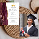 Die trendige Graduierungsparty 2024 lädt mit einem Aquarellbild eines agate Geodes in Bordeaux-Farbtönen mit goldenen Highlights aus den Imitaten, sowie einem vergoldeten Imitat-Folienverschluss und einer Tassel ein. Das Wort "Abschluss" und der Vorname des Absolventen erscheinen in elegantem handgeschriebenem Holzkohlefaser auf weißem Hintergrund, zusammen mit den Einzelheiten des Party in serifenlosen Sans und kursiven Schriftart. Ersetzen Sie das Beispielbild auf der Rückseite einfach durch ein vertikales Foto des Absolventen.