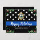 Schick fröhliche Weihnachtsgrüße an Freunde, Geschäftsleute , andere Strafverfolgungsbehörden und deine Gemeinde mit dieser einzigartigen Thin Blue Line Police Department Weihnachtskarte - American Flag in polizeilichen Flaggenfarben, modern schwarz und blau mit heiligen Blätter und Beeren. Personalisieren Sie mit dem Logo, der Nachricht und der Abteilung der Polizeiabteilung. COPYRIGHT © 2020 Judy Burrows, Black Dog Art - Alle Rechte vorbehalten. Haushaltspolizei Weihnachtskarten Blue Line