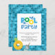 Party Einladung mit blauen Kacheln im Hintergrund, Ananas und Sommerdrink. Personalisieren und Hinzufügen von Party-Details. Ideal für ein Schwimmbad oder das 4. Juli Party.