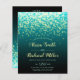 Lichtstrahlen in der aquamarinen Luft, Aqua Winter Nacht Hochzeitseinladung mit QR-Code für UAWG, die weiß und blassgelb gelblich Lichter, die auf aquamarin blau, aqua und türkis Hintergrund funkeln.