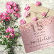 Eine gmädchenhafte und trendige Save the Date-Karte für eine Quinceañera, 15. Geburtstagsfeier. Rosa Imitat aus Rosa mit metallischem Hintergrund, mit Glitzer aus Imitaten dekoriert. Personalisieren und fügen Sie Datum und Namen/Text hinzu. Der Text: Save the Date wird mit einem großen angesagten, handgeschriebenen Stilskript mit Swashes geschrieben. Nummer 15 mit Rose goldfarbenen Ballon Stil Schriftart.
