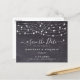 Save The Date! Mit diesen rustikalen Tafeln und Streichelleuchten Save the Date Postkarten können Sie Ihre Hochzeit mit Freunden und Familie verkünden. Diese Hochzeitseinladungen müssen als übergroße Postkarten verschickt werden, sodass es zu normalen Portogebühren kommen kann, sie aber keinen Umschlag oder eine Rücksendeadresse benötigen. Diese einzigartige Saitenleuchten und Schieferplatten Hochzeit gerettet die Karten werden einen bleibenden Eindruck machen, Ihre Gäste werden sicherstellen, Save the Date! COPYRIGHT © 2020 Judy Burrows, Black Dog Art - Alle Rechte vorbehalten. Haushaltsstring Lights Rustische Hochzeit Speichern Sie das Datum Postkarte