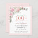 Weich rosafarbener Rahmen mit einer eleganten rosa rosa Blumenstruktur in der oberen links Ecke. 100. ist in einer schönen Rose goldene Textur geschrieben. Hübsches und feminines Design.