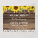 Budget Rustikales Bauernhaus Holz, String Light und Gelb Sonnenblumen Blume und Spitzen Wir haben Moved New Zuhause oder New Address Karten - beinhaltet schöne und elegante Schrift Typografie mit modernem Blumen für die besondere New Zuhause oder New Address Feier.