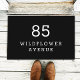 Ein einfaches, stilvolles, individuelles Adressdesign mit moderner Typografie in weiß auf schwarz mit Hausnummer und Straße. Der Text kann leicht personalisiert sein, um ein Design so einzigartig wie Sie sind zu machen!
