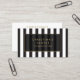 Votre nom ou nom d'entreprise est élégamment affiché sur un arrière - plan rayé noir et blanc pour une esthétique très chic et design. Ce carte de visite glamour est parfait pour les boutiques, les stylistes de mode, les vendeurs Poshmark, les consignes, les magasins en ligne, et plus encore. © 1201AM CREATIVE