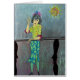 encre sur le dessin de papier de la femme à un compteur