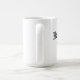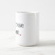 Weiße Tasse mit schwarzem Text und einem kleinen roten Herzen