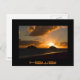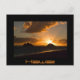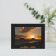 Carte postale avec lever de soleil orange sur deux îles à Lanikai Beach, sur la rive est de l'île d'Oahu, Hawaï avec une frontière noire et le texte : 'Hawaï'.