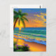 Entfliehen Sie dem Paradies mit unserer atemberaubenden Tropical Beach Postcard! Auf dieser Postkarte befindet sich eine Aquarelllandschaft mit Palmen und einem spektakulären Sonnenuntergang. Viel Spaß!