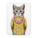 Dieses Design zeigt ein Katzenportrait in einem Sommer-Shirt und Hawaiian lei.