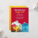 Tropical à thème, Hawaiian luau invitations de fête de vacances. Couleurs rouge et or avec de grandes fleurs exotiques et un ornement de boules de Noël le long du fond. Plumeria blanche, hibiscus rouge et oiseau jaune des fleurs du paradis. Customisez le texte sous forme de paragraphe, puis choisissez le type de papier et la forme de bord.