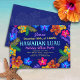 Invitations de fête de bureau Hawaiian luau avec frontière colorée hibiscus et modèles de texte. employés Invitations à une fête de bureau de vacances avec un thème tropical, ou lancer une fête d'anniversaire luau. Customisez le texte pour n'importe quelle célébration sur l'île, il suffit de changer le texte de "fête de bureau de vacances" à n'importe quel événement. Les cartes horizontales sont bleu violet foncé sur les deux côtés avec de grandes fleurs colorées et des feuilles.