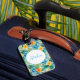 Individuelle Gepäckmarke mit einem sehr tropischen hawaiianischen Druck mit Aloha-Text gezeigt. Passen Sie dieses Tag an oder kaufen Sie, wie es ist.