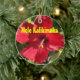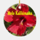 Mele Kalikimaka - frohe Weihnachten in der hawaiischen Sprache. Eine niedliche tropische Feiertagsdekoration, welche die populäre Blume, einen roten Hibiskus kennzeichnet.