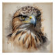 Ein Hawk in einer detaillierten Wasserfarbe mit ausdrucksvollen Augen wird vor einem weichen, verschwommenen Hintergrund dargestellt. Die natürlichen Farben verstärken das lebensechte Aussehen.