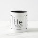 Tasse mit "He He He He" schrieb unter Verwendung des Periodic Table Elements Helium.
