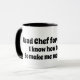 Der Koch führt die Küche Kontrollen der Speisen und Dienstleistungen. Der einzige Weg, um gute Standards zu erhalten, ist, sicherzustellen, dass der Koch Kaffee zu jeder Zeit hat. In ihrer eigenen Tasse!