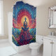 Eine intensive Illustration eines Wesens, das an den Wurzeln eines Baumes sitzt, mit einem leuchtenden Herzklopfen, farbenfrohen Wolken und einem lebhaften Sonnenaufgang in Blau, Orange und Grün.