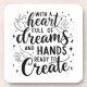 Inspiration Untersetzer mit dem Satz "Mit einem Herz voller Träume und Hände bereit zu schaffen".