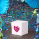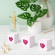 Favor box with a pink heart shaped gemstone on light pink background