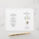 Schwarzweiß-Hochzeitsprogramm am Strand mit Single, herzförmige Muschel vorne. Der gesamte Text ist schwarz mit einem großen Ampere und trägt die Namen auf der Vorderseite. Einfache und elegante Vorlage für eine Tropenfeier.